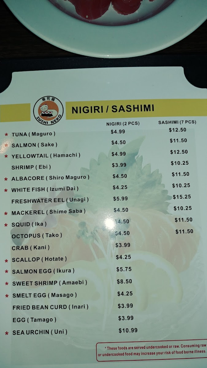 Sushi Neko Menu